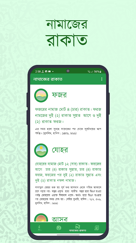এই অ্যাপ-এর দ্বারা আপনি জানবেন অর্থপূর্ণ নামাজ, ২৫টি ছোট সূরা আর নামাজের রাকাত।