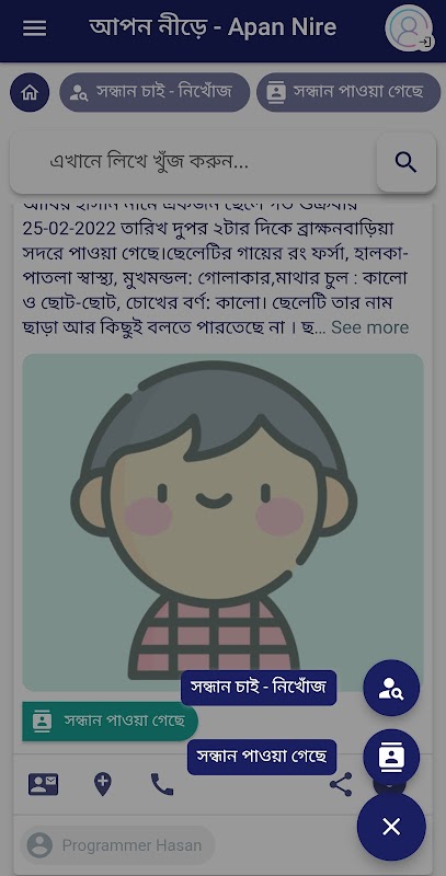 “আপন নীড়ে” অ্যাপটি হারিয়ে বা নিখোঁজ মানুষদের আপন নীড়ে ফিরে যেতে সহায়তা করবে ইনশাআল্লাহ।