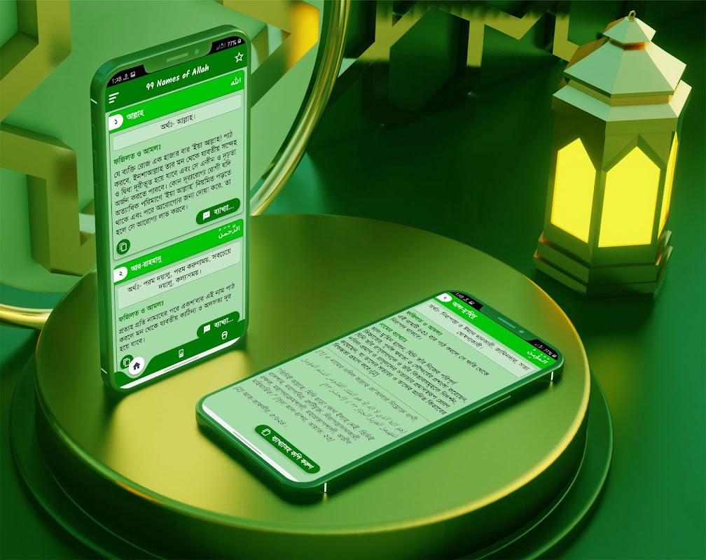 وارنر 99 کے ناموں کے طور پر اللہ کے امیدوار پیکر لکھے ہوئے ہیں তাই آپ کو 99 نام کے معنی সহ فِجِلِت اہداف والপেপার বাংলা کے طور پر آپ ہمیں اس ایپ کے ذریعے۔ ওয়ারপেপারের 99 নাম ওজিল সহ আপনার মোবাইল ফোনে اللہ کے 99 نام وال پیپر ডিজিট তসবিহ এর মাধ্যমে 99 অর্থ ফজিলত অ্যাপটি ডিজাইন করেছি, যাতে ব্যাবহারকারিরা যে কোন পরিস্থিতিতে এবং কোন পরিস্থিতির নাম তসবিহ গণনা করার জন্য পকেটে থাকার মোবাইল সুবিধার মাধ্যমে। অচিরেই 99 نام অডিও সহ ধরবো ইনশাল্লাহ