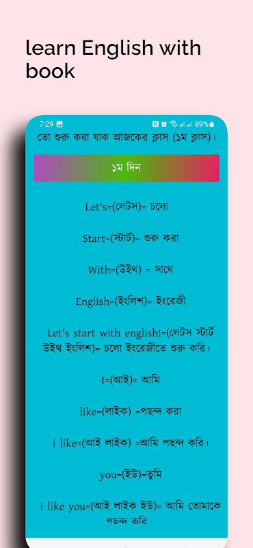 ৪৫ বাংলা ইংরেজি শিখার জন্য ভাগে ভাগ করা হয়েছে আমাদের এই অ্যাপের প্রথম ভাগে ইংরেজি শব্দার্থ الفاظ کی کتاب/ ذخیرہ الفاظ দেওয়া হয়েছে আপনি থেকে অনেক শব্দার্থ শিখতে পারবেন।