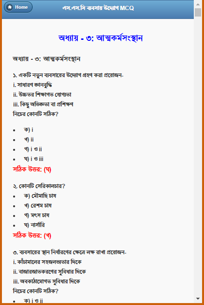 নবম-দশম শ্রেণীর ব্যবসায় উদ্যোগ বিষয়ের নৈর্ব্যক্তিক প্রশ্নোত্তর নিয়ে এই অ্যাপ।