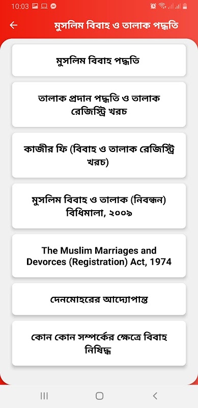 اس موبائل ایپ میں مسلم لا میرج رجسٹری پروسیجر، میرج رجسٹری فیس کیلکولیٹر، طلاق کی ادائیگی کا طریقہ کار، طلاق رجسٹری فیس کیلکولیٹر، مسلم میرج اور طلاق (رجسٹریشن) ایکٹ-1974، مسلم شادی اور طلاق (رجسٹریشن) رولز- 2009 اور مشورے پر مشتمل ہے۔ جہیز ہے
