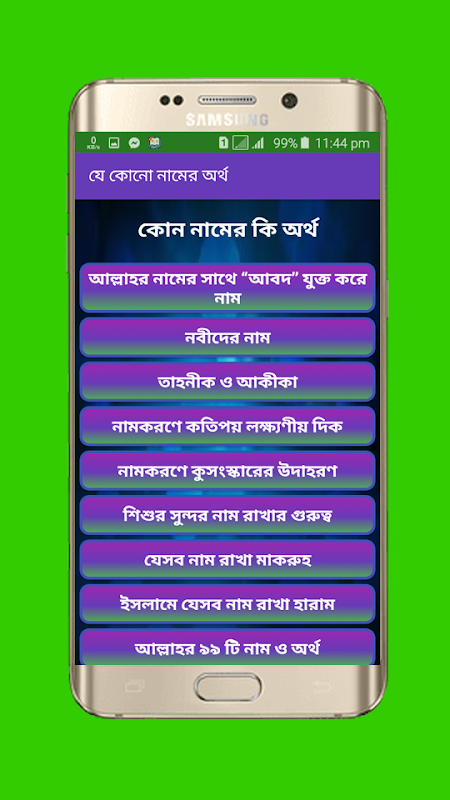 আমাদের আজকের আয়োজন যে কোনো নামের অর্থ । আমাদের সমাজে লক্ষ্য করলে দেখা যায় কোনো শিশু জন্মগ্রহন করলে শিশুর মা-বাবা এবং আত্মীয় স্বজন শিশুটির কি নাম রাখবে সে বিষয়টি নিয়ে চিন্তায় পরে যান। তাই আপনারা খুব সহজেই যাতে যে কোনো শিশুদের অর্থপূর্ণ এবং একটি সুন্দর নাম রাখতে পারেন তাই অ্যাপটিতে সকল নামের অর্থ তুলে ধরেছি।