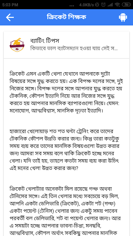 যারা ক্রিকেট খেলা ভালোভাবে শিখতে চান তাদের জন্য এই অ্যাপ বানানো হয়েছে ।