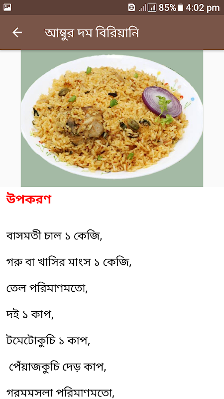 খুব কম ভোজন রসিক বাঙালিই আছেন যে বিরিয়ানি পছন্দ করেন না। শহরে বা গ্রামে সবাই বিরিয়ানি খেতে ভালবাসেন। বাহিরে হোটেল রেস্টেুরেন্টে গেলে মজার স্বাদের বিরিয়ানি খেতে পারবেন। কিংবা বাহির থেকে কিনে এনে খেতে হবে। কিন্তু নিজে রান্না করতে পারলে তো অপেক্ষা করতে হবে না। যেকোনো সময় আপনার প্রিয়জনদের সামনে হাজির করতে পারবেন নিজ হাতে রান্না করা মজার স্বাদের বিরিয়ানি। উৎসবে কিংবা অতিথি আপ্যায়নে বিরিয়ানি রান্না হয় প্রায় সব বাড়িতেই। এই বিরিয়ানিরও রয়েছে নানা ধরন। আর এই নানা ধরণের বিরিয়ানি রেসিপি আছে আমাদের অ্যাপটিতে যা থেকে মাজার মজার বিরিয়ানি, ঐতিহ্যবাহী বিরিয়ানি,শাহী বিরিয়ানি তৈরী করতে পারবেন।