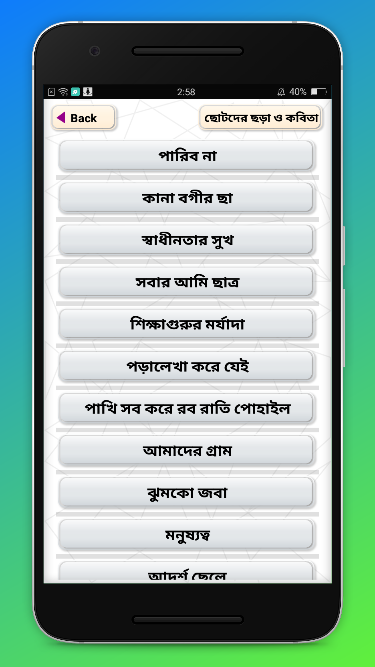This app has been adapted by the charming Bengali rhymes and poems of small ladies.