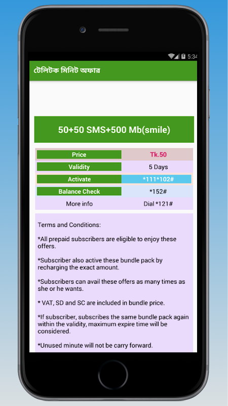 یہ ایپ بنگلہ دیشی موبائل آپریٹرز کے لیے مفت منٹ کے استعمال کے اشارے اور چالیں فراہم کرتی ہے۔ تمام ٹیلی ٹاک منٹس موبائل آپریٹرز منٹ پیکج کی تفصیلات ایک ہی درخواست میں۔ صارف آسانی سے کوئی بھی منٹ پیک اور منٹ بنڈلز سبسکرائب اور ایکٹیویٹ خرید سکتا ہے۔ اس کے علاوہ آپ کسی بھی بنڈل پیکج کے باقی ماندہ ڈیٹا بیلنس کو بھی چیک کرتے ہیں۔
