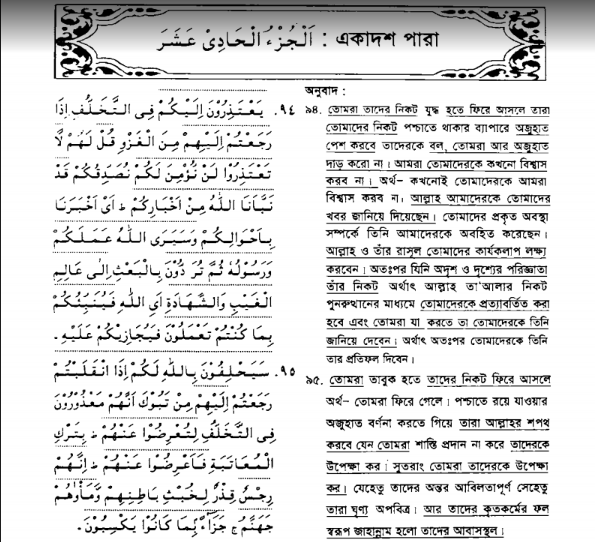 بنگالی میں تفسیر جلیلین قرآن اور بنگلہ زبان میں تفسیر تفسیر القرآن کے تمام حصے