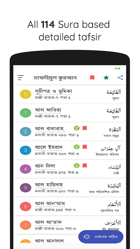 ☼ সুরাধারী তাফসীর - ১১৪ সুরা সামনে উপস্থাপন করা হয়েছে সহজ ও বুকমার্ক করা।