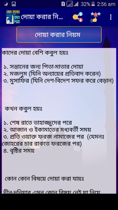 সহ আরো অনেক গুলো দোয়া যা আপনারা এপটি ইনস্টল করলেই দেখতে পাবেন।