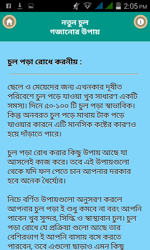 চুলের গুরুত্ব কেবল সেই বুঝে যার মাথাই কোন চুল নাই। তাই আমাদের উচিত মাথার চুল পরে যাওয়ার আগেই চুলের যত্ন নেয়া। নতুন চুল গজানোর উপায় অ্যাপ টি আপনার মাথার চুলের যত্ন নেয়ার এবং মাথায় নতুন চুল গজানোর সকল প্রকার উপায় বলে দেবে। আমাদের এই নতুন চুল গজানোর উপায় অ্যাপ টি বাংলাদেশ এর বিভিন্ন ডাক্তার এর দেয়া মতামত এর ভিত্তিতে করা হয়েছে। আসা করে আমাকের চেষ্টা আপনাদেরকে সাহায্য করবে।