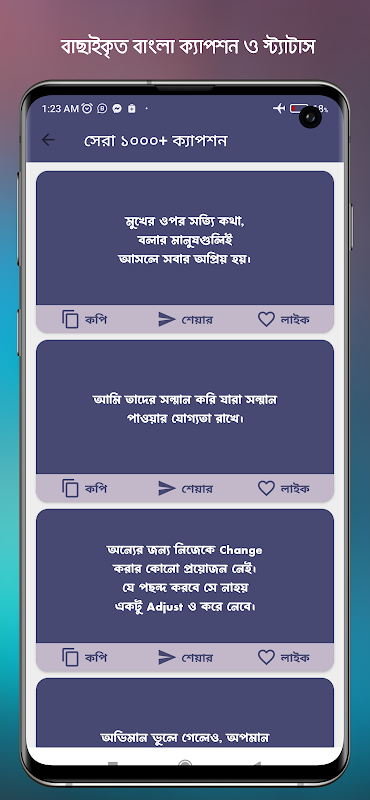 کیپشن ایپس میں رومانوی سائیری، بہترین محبت کے اقوال، کہاوتیں تعلیمی اور حوصلہ افزا اقتباسات (بیککھاتو ایکٹی)، بنگلہ بہترین مضحکہ خیز اسٹیٹس شامل ہیں۔