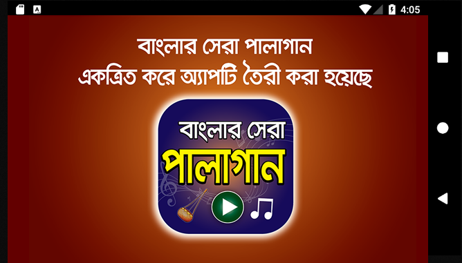 ایپ کو مقبول بنگلہ پالا گانوں کے مجموعہ کے ساتھ مرتب کیا گیا ہے۔
