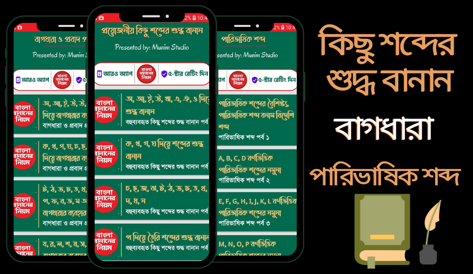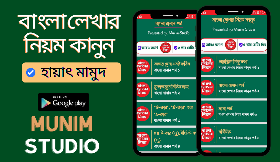 ہم نے اپنی ایپ میں "بنگلہ اکیڈمی کے معیاری بنگلہ ہجے کے قواعد" (بنگالی میں لفظ کے معنی) پر تفصیل سے تبادلہ خیال کیا ہے۔ اس کے علاوہ ڈاکٹر حیات مامود کے "بنگلہ لکھنے کے اصول" کتابچے کے علاوہ، میں نے بنگالی املا پر دیگر مفید کتابوں کی تفصیلات شامل کی ہیں۔ امید ہے کہ ہمارے قارئین اس ایپ سے مستفید ہوں گے۔