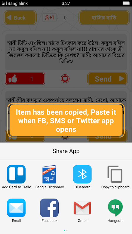 আমাদের এই Bangla jokes app আছে সোশ্যাল শেয়ারিং অপশন করা আপনি এই সব মজার মজার মজার কৌতুক ও হাসির বক্স কথাগুলো ফেসবুকে আপনার মত শেয়ার করতে আপনার বন্ধুদের সাথে।