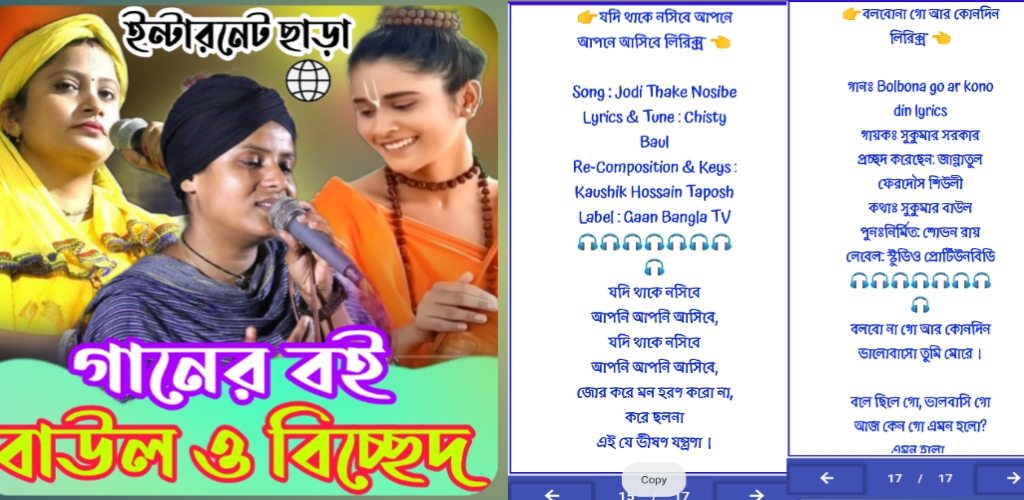 আমাদের এই অ্যাপে গ্রাম বাংলার বাউল ওচ্ছেদ গানের বই পেতে পারেন।