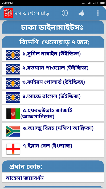 =>বিপিএল ২০১৯ আসরে ৭টি দলের অলরাউন্ডার, ব্যাটসম্যান্, বোলা্র, উইকেট কিপার ও কোচার