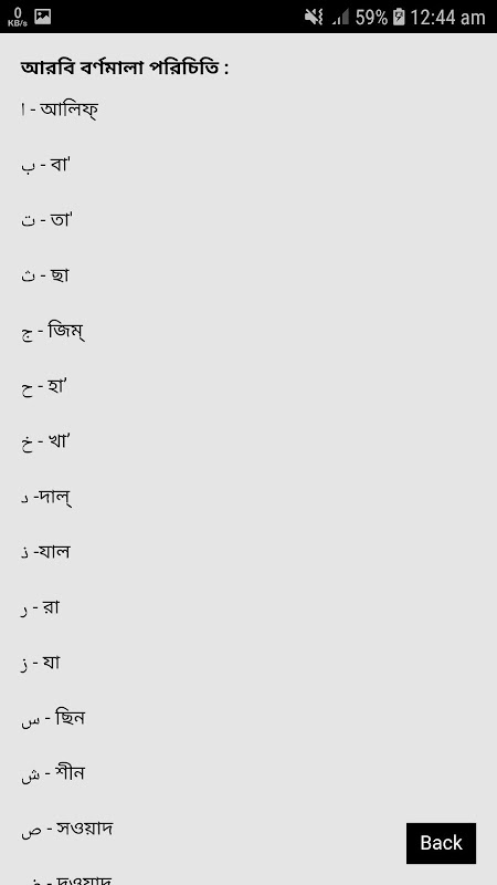 আরবি শিক্ষার জন্য সুন্দর একটি অ্যাপ। এই অ্যাপ্লিকেশনটি বাংলা ভাষাভাষী যারা আরবি শিখতে চান ও কুরআন দেখে পড়া শিখতে চান শুধুমাত্র তাদের জন্য।