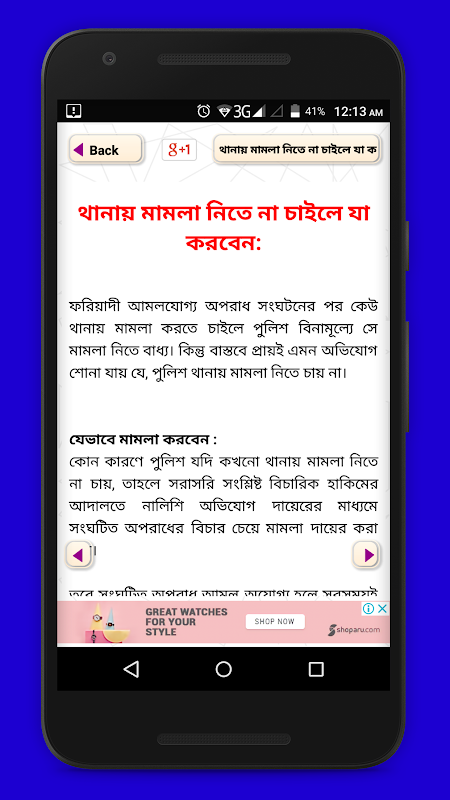 یہ ایک مفت بنگلہ ایپ ہے جس میں آپ کو بی ڈی مواد کے طور پر مختلف قانونی مشورے یا مقدمات یا قانونی چارہ جوئی کے لئے نکات اور بنگالی یا بی ڈی لوگوں کے لئے بہت ہی مددگار ایپ بھی دی جاتی ہے۔