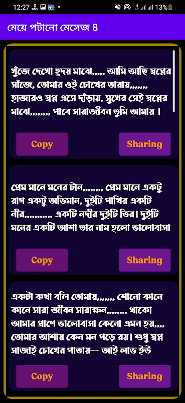 ایپ میں لڑکیوں کو کچلنے والے پیغامات حاصل کرنے اور اس کا دل جیتنے کے لیے تمام رومانٹک SMS ہیں۔