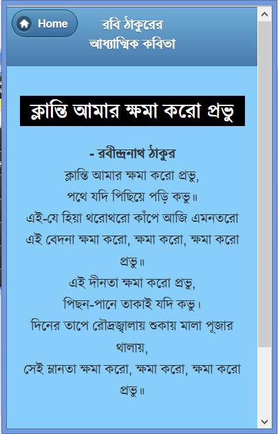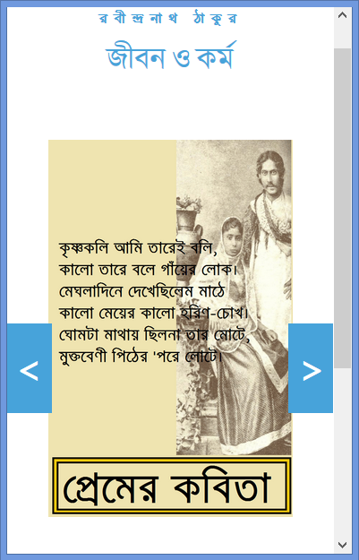 রবীন্দ্রনাথ ঠাকুরের কবিতা ও জীবনী নিয়ে এই অ্যাপ ডেভেলপ করা হয়েছে।