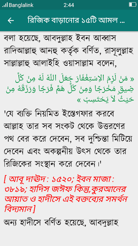 অ্যাপটিতে কুরআন ও সহিহ সুন্নাহের আলোকে রিজিক বাড়ানোর ১৫টি আমল ও উপায় আলোচনা করা হয়েছে ।