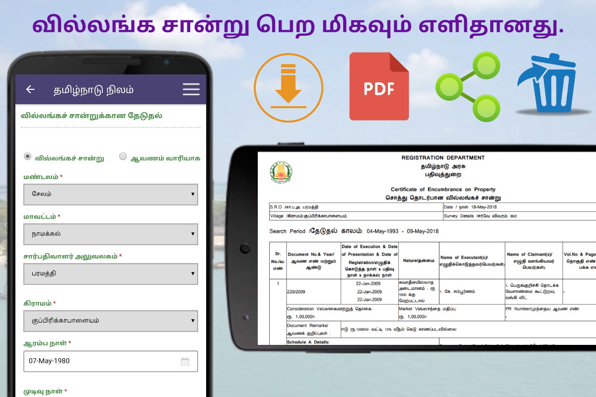 வில்லங்க சான்றுகளை பார்க்க மற்றும் தரவிறக்கம் செய்ய...