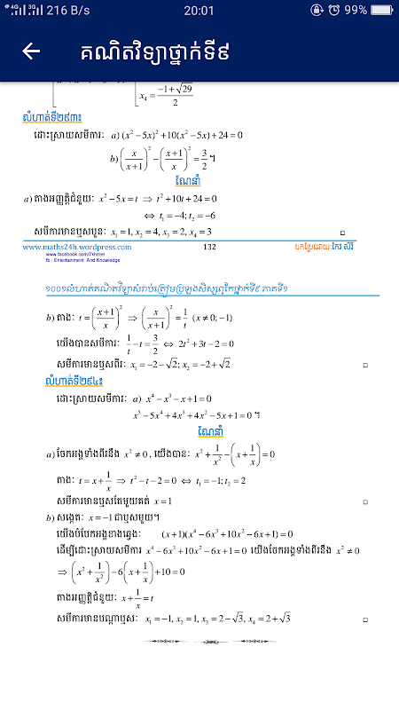 កម្មវិធីនេះត្រូវបានដកស្រង់ចេញពីសៀវភៅ គណិតវិទ្យាថ្នាក់ទី៩ ១០០១លំហាត់ត្រៀមប្រលងសិស្សពូកែ ហើយត្រូវបានរៀបចំជាផ្នែកៗ ងាយស្រួលដល់អ្នកដែលប្រើប្រាស់ស្មាតហ្វូន។