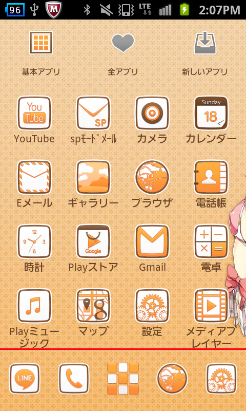②アプリ一覧(ドロワー)から、きせかえテーマをタップ