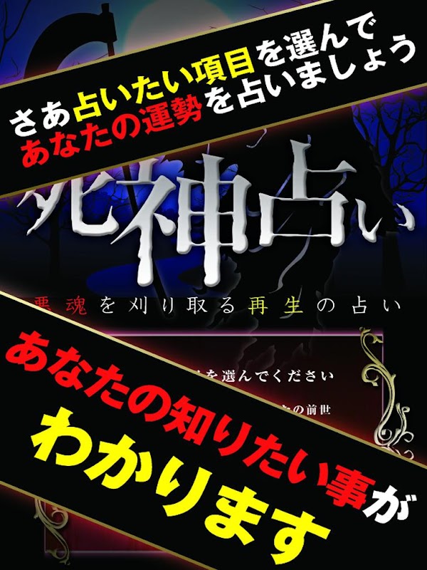 この世の真実と未来の運勢を結びつける占い『死神占い』にようこそ。