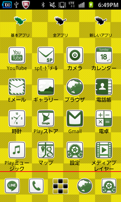 ②アプリ一覧(ドロワー)から、きせかえテーマをタップ