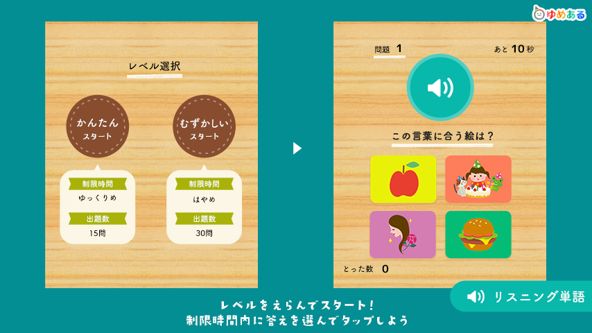 ◆ 4 میں سے ایک کارڈ کا انتخاب کریں اور لفظ کے لفظ سے ملنے کے لیے اسے تھپتھپائیں۔