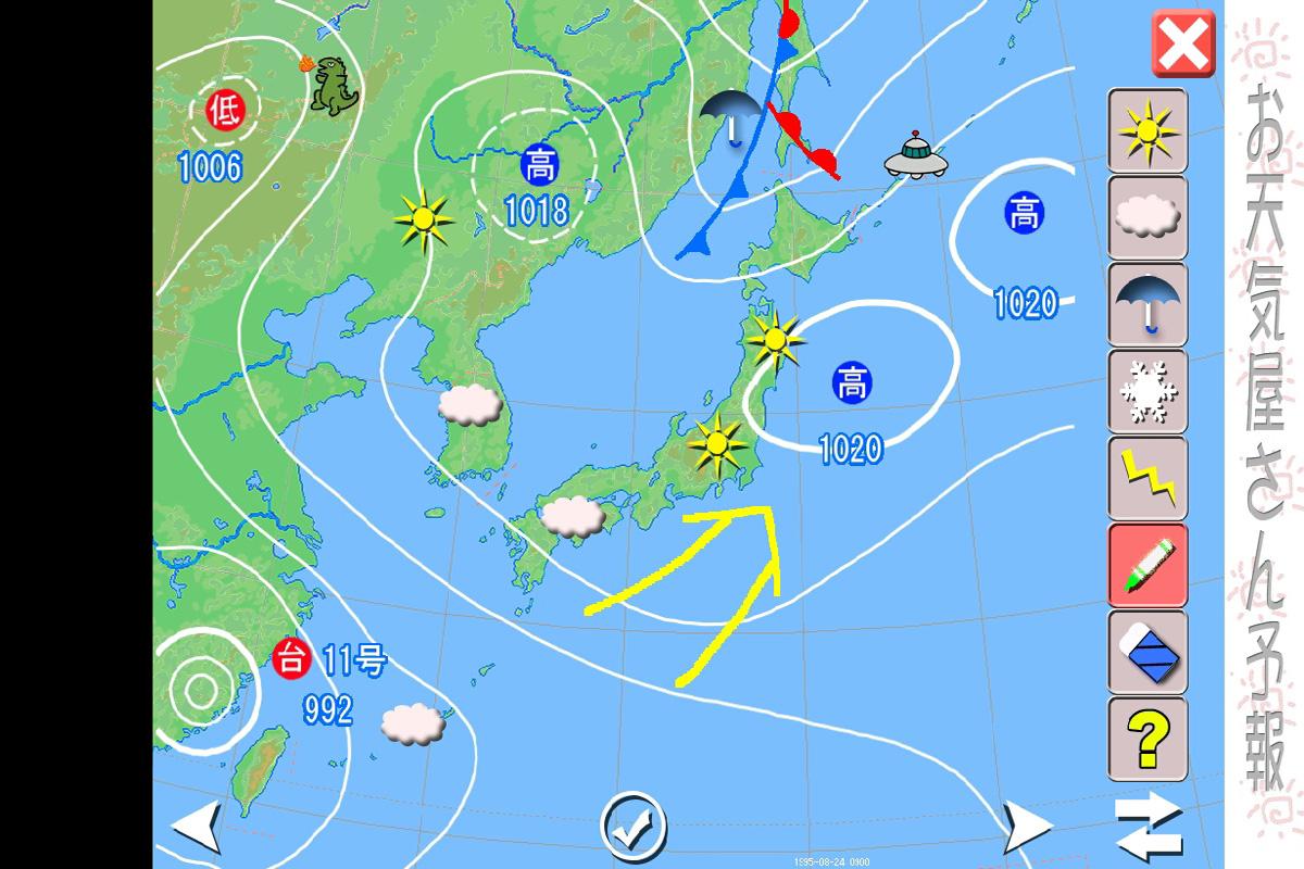 自由に天気マークを配置して、自由に予報してください。