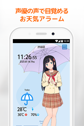 آپ ویجٹ استعمال کر سکتے ہیں! موسم کی الارم ایپ جو موسم کی پیشن گوئی کو آواز کے اداکار کے صوتی الارم کے ساتھ جوڑتی ہے ♪