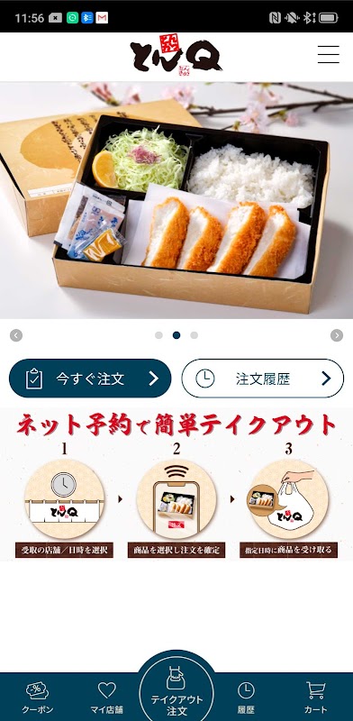 موبائل آرڈر کے ساتھ ایک خصوصی اسٹور سے تازہ بنی ہوئی سور کا گوشت کا کٹلیٹ لنچ باکس نکالیں! یہ "Tonkatsu Tonkatsu Q Official App" ہے جو آپ کو Tonkatsu Q کو آسانی سے استعمال کرنے کی سہولت دیتا ہے۔