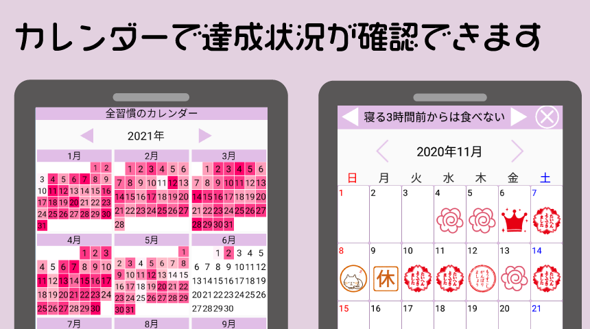 ★ آپ کیلنڈر پر کامیابی کی حیثیت دیکھ سکتے ہیں۔
