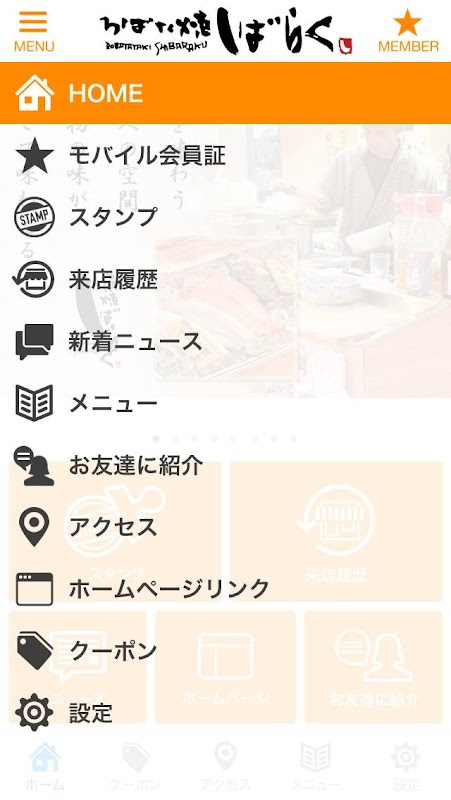 このアプリでは、ろばた焼しばらくの色々な情報やアプリユーザー限定のお得なサービスが手に入ります!