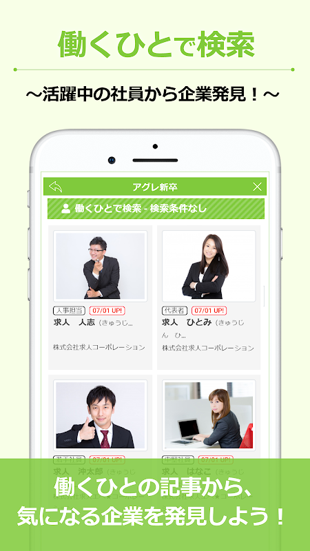 従来の採用情報はもちろん写真付きの企業情報で、会社や社員の雰囲気をcheck出来ます。