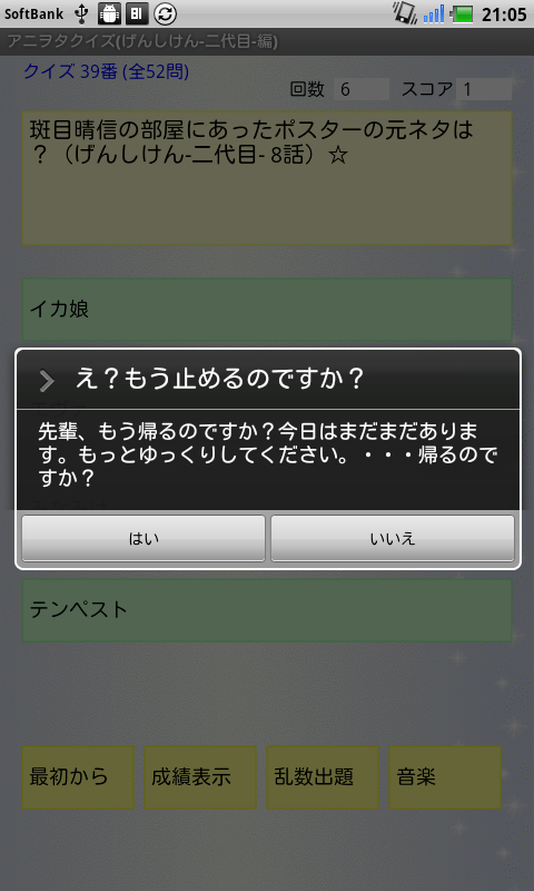 クイズの成績をファイルに保存でき、各設問の正解状況を表示することもできます!