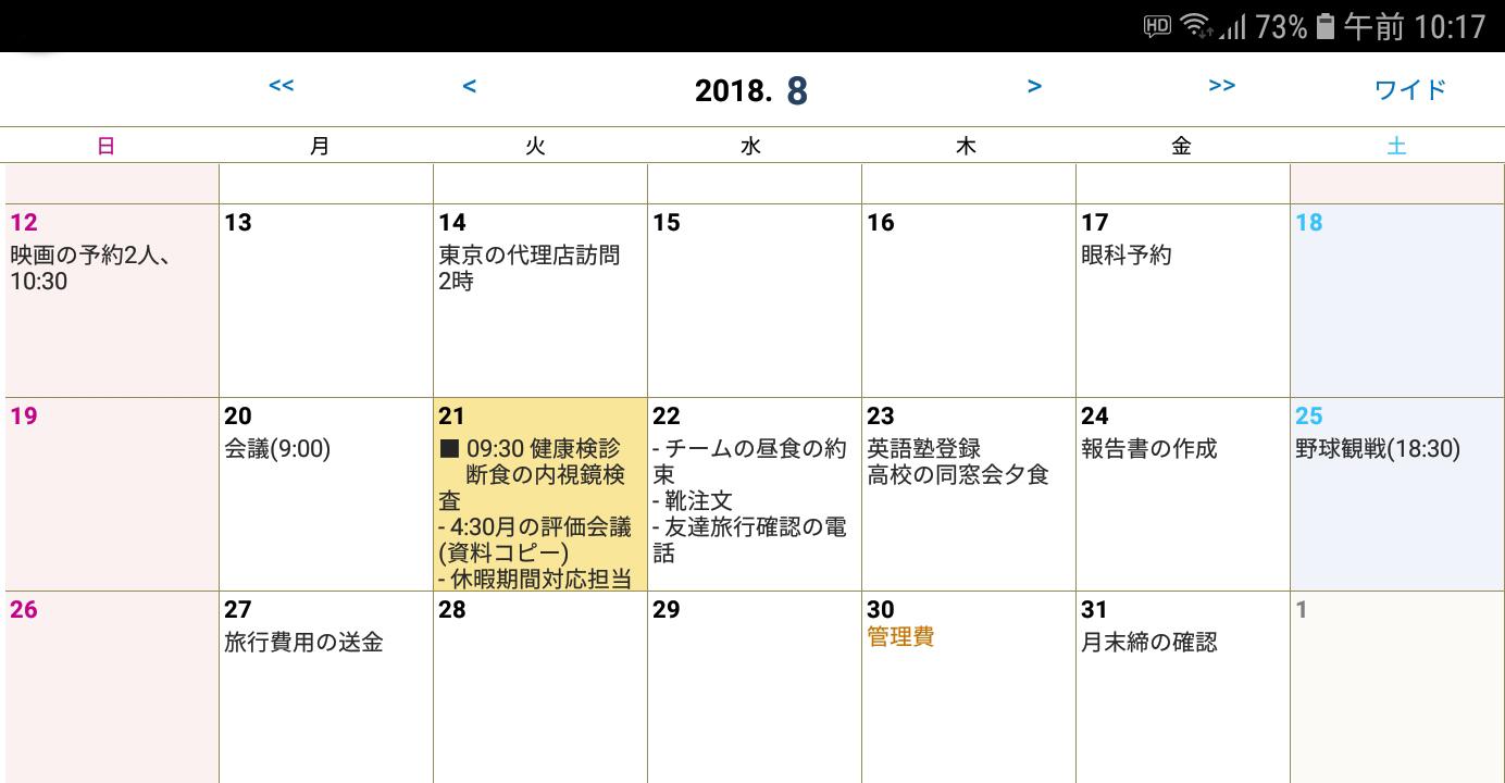 - 状態バーの今日日程 : 状態バーを下げれば、今日のスケジュール自動表示機能