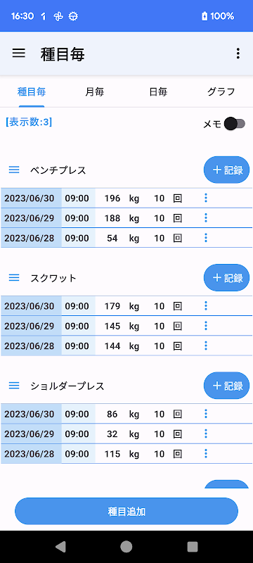 ウエイトトレーニング 記録帳 筋肉トレーニング 重量と回数 APK معلومات