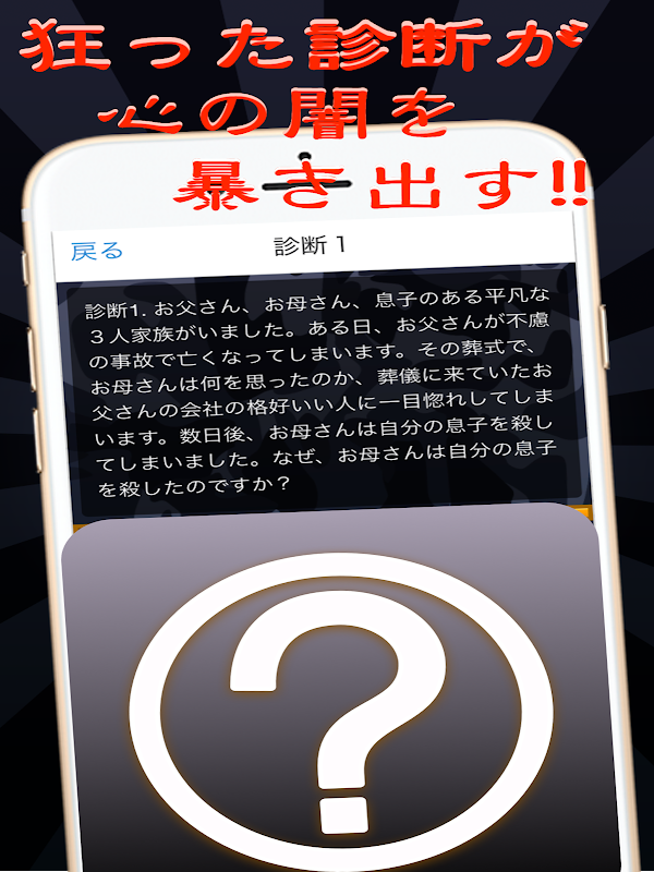 サイコパス診断!!狂った診断が心の闇を暴き出す。狂気のブラック心理テストを通してあなたを分析!暇つぶしにちょうどいいけどやっぱり怖い診断アプリの決定版!