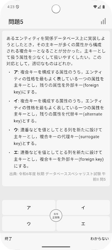 サクッとデータベーススペシャリスト午前II過去問【サクトレ】 1.0.7