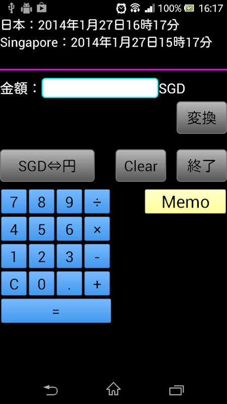 また、ボタン「SGD⇔円」を押すことにより、日本円からSGDへの変換も可能です。