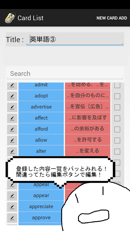自身で暗記帳を作成し、カードをどんどん追加していき、自分だけの暗記帳を是非本アプリでおつくりください!
