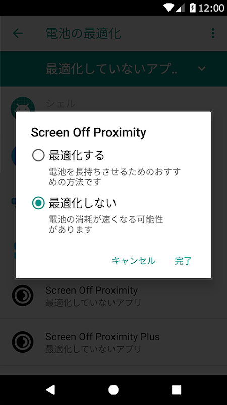 ◆「電池の最適化」を解除しなくても作動するようにしました。
