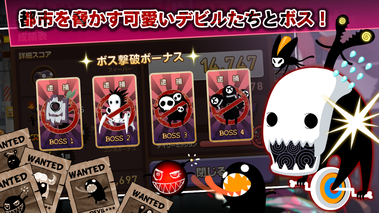 街を脅かすデビルと各ステージのボスを倒して、大切なあなたの街を守ろう!!