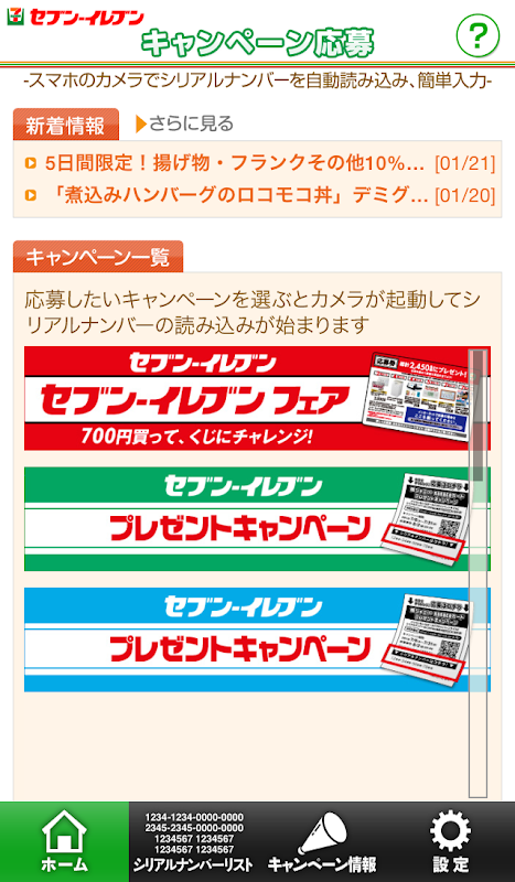 • セブンイレブンの簡単入力アプリ~シリアルナンバーを撮影~ اسکرین شاٹ 1