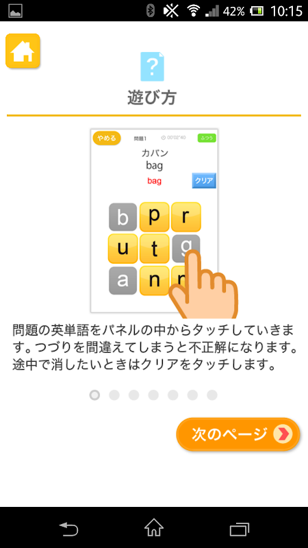 問題の英単語をパネルの中からタッチして当てるアプリです。