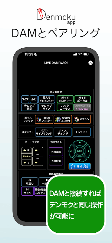 DAM پر گانے تلاش کرنے کے علاوہ، آپ QR کوڈ پڑھ کر DAM سے جڑ سکتے ہیں اور اپنے اسمارٹ فون سے براہ راست ریزرویشن کر سکتے ہیں۔